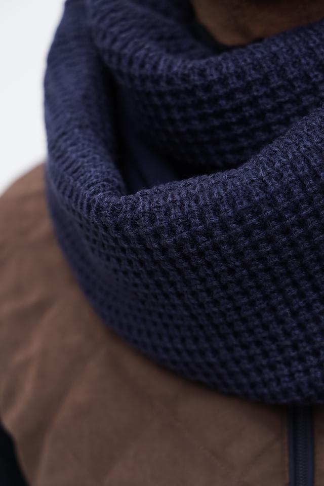 Шарф имеет форму снуда, что позволяет носить его различными способами, обернув вокруг шеи один или несколько раз. Полиакриловое волокно, из которого изготовлен шарф, отличается мягкостью, легкостью и устойчивостью к износу.