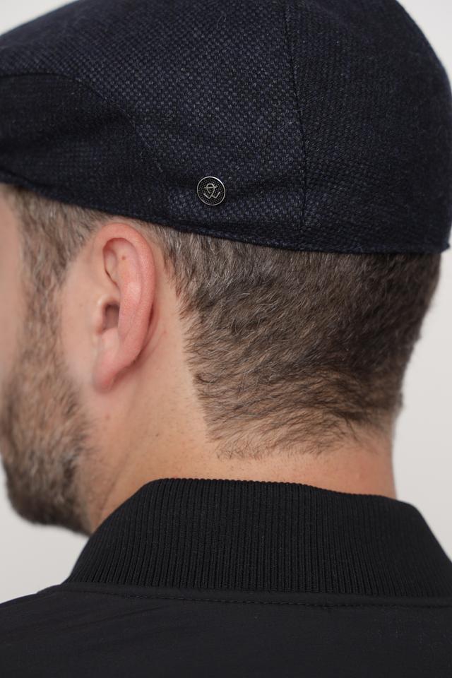 Кепка имеет классическую форму и тёмно-синий цвет с текстурным рисунком. На левой стороне кепки расположена небольшая металлическая эмблема бренда. Благодаря эластану в составе, кепка хорошо держит форму и обеспечивает удобную посадку.