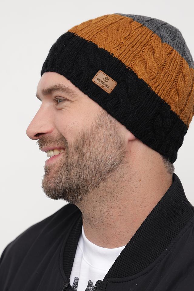 Мужская шапка Wegener выполнена в сочетании чёрного, горчичного и серого цветов. Модель выполнена из мягкого полиакрила и имеет удобную посадку благодаря эластичной вязке. Состав: полиакрил 100%