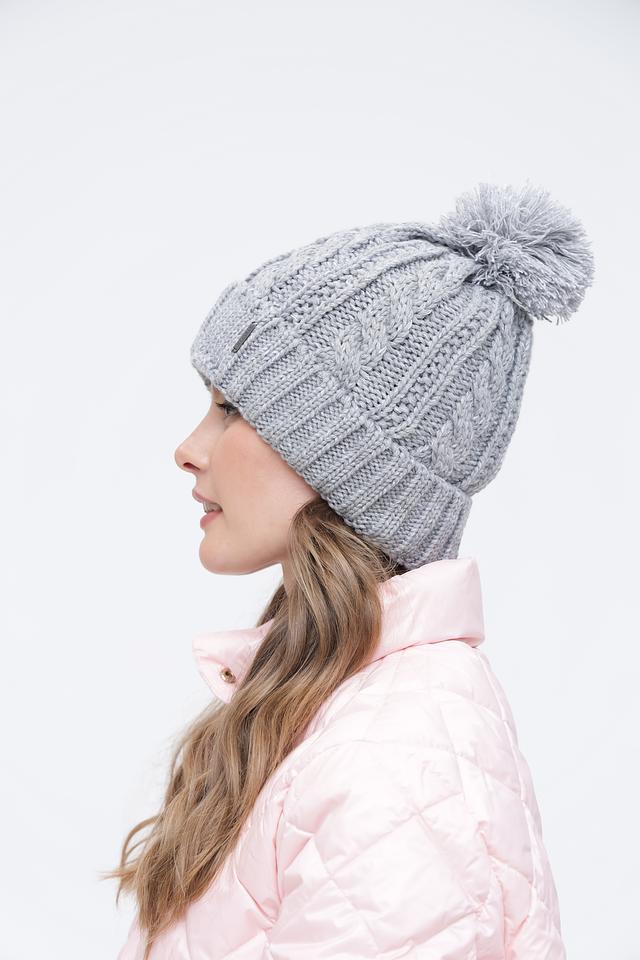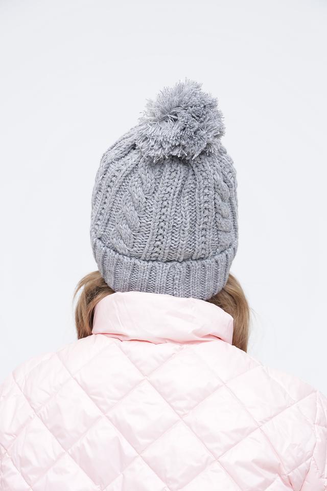 Шапка имеет классический дизайн с большим помпоном, который придаёт ей игривый и уютный вид. Объемная вязка с косами обеспечивает дополнительное тепло и комфорт в холодную погоду.
