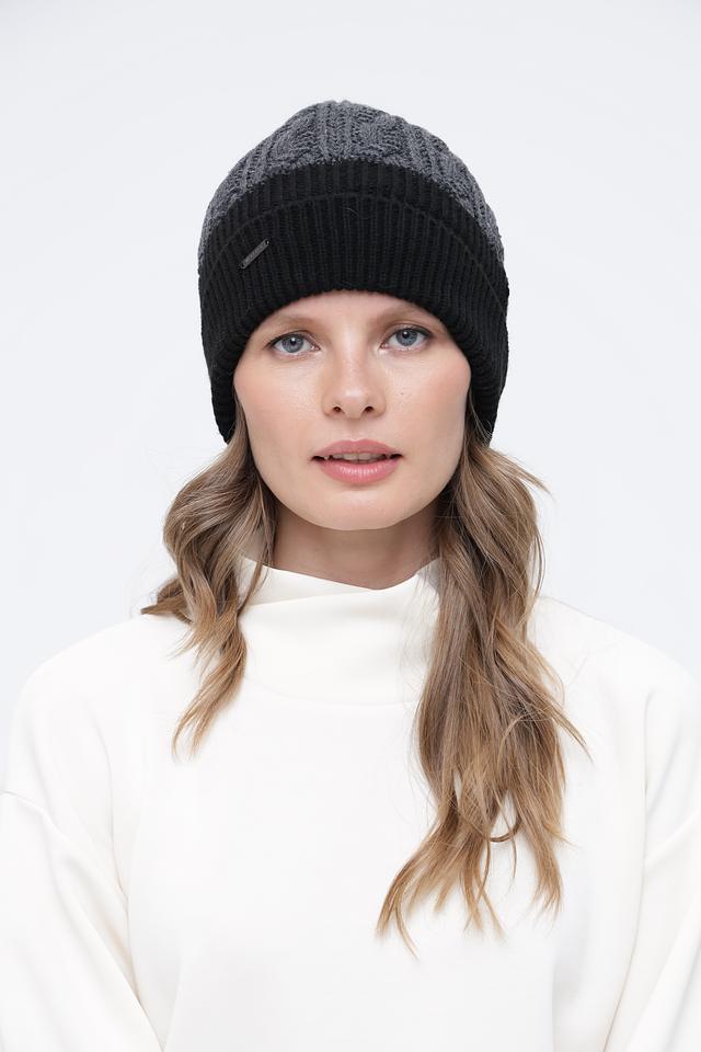 Женская шапка Wegener выполнена в сочетании чёрного и серого цветов с фактурным вязанием. Модель дополнена небольшим металлическим логотипом. Изготовлена из мягкого полиакрила, обеспечивающего комфорт и тепло. Состав: полиакрил 100%