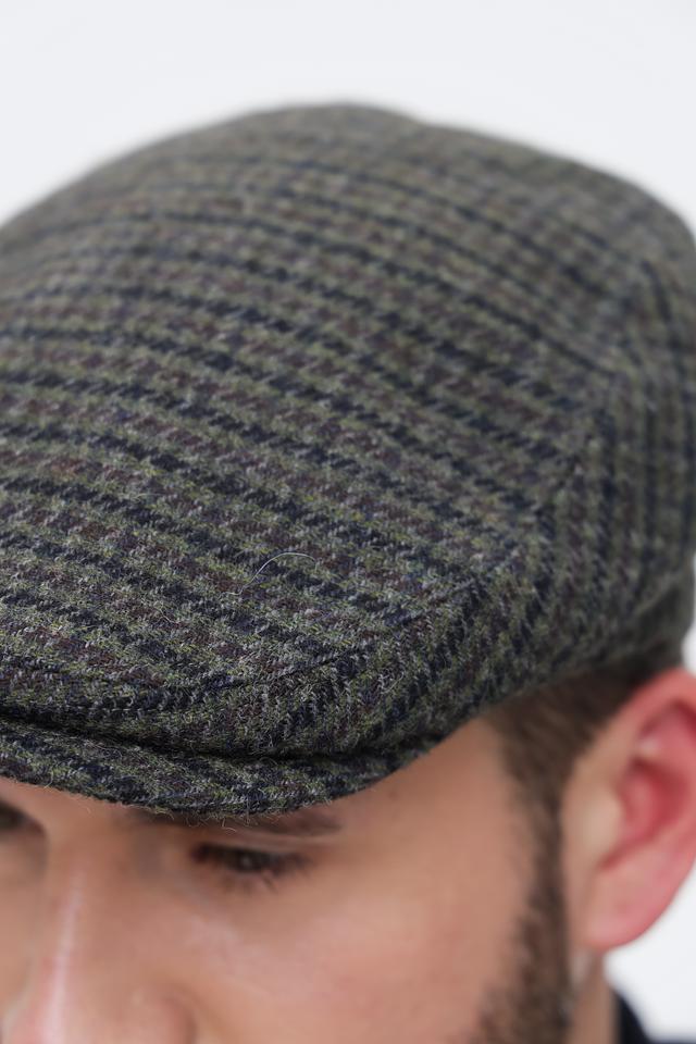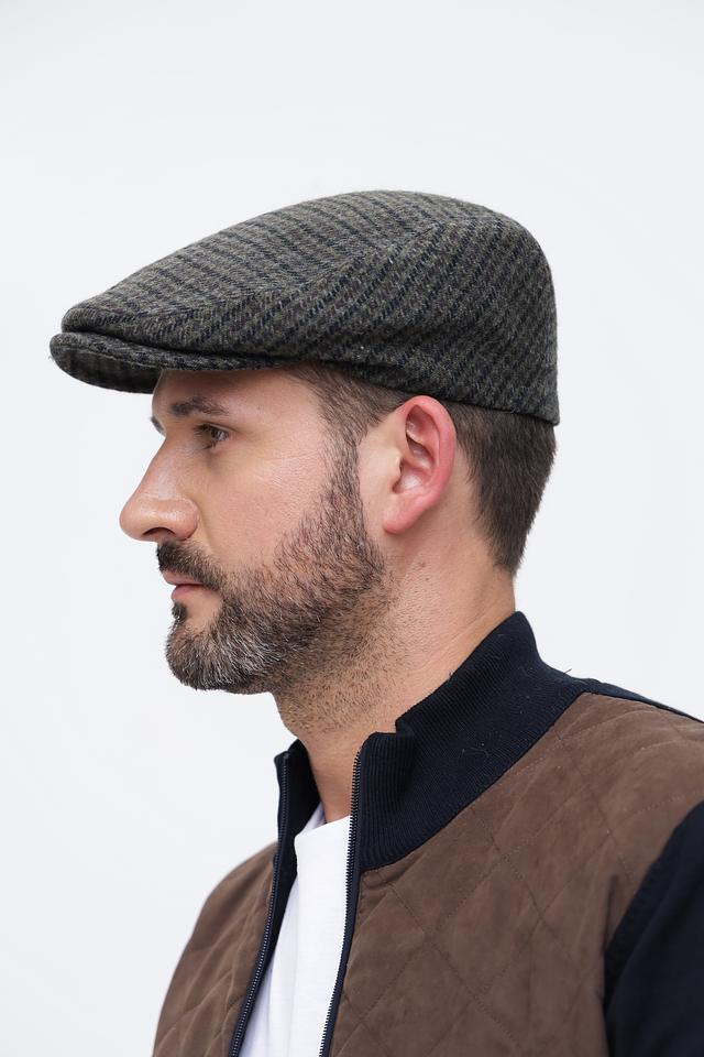 Основной цвет кепки – серый, с выразительным клетчатым рисунком, сочетающим в себе оттенки зеленого, серого и коричневого. Такой принт делает эту модель универсальной и легко сочетаемой с различной одеждой. Классический крой кепки обеспечивает удобную посадку по голове.