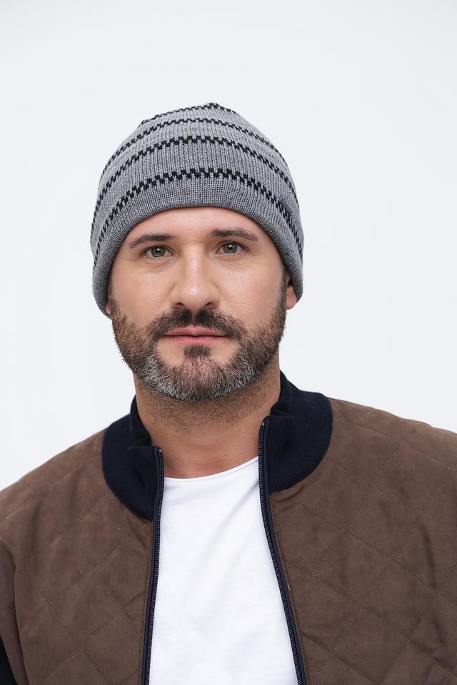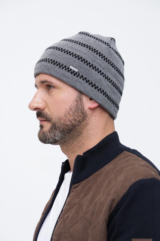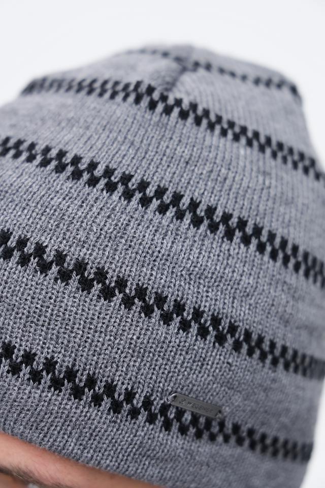 Мужская шапка Wegener серого цвета с геометрическим узором. Изготовлена из мягкого полиакрила, обеспечивающего комфорт и тепло в холодную погоду. Стильный аксессуар для повседневного образа. Состав: полиакрил 100%