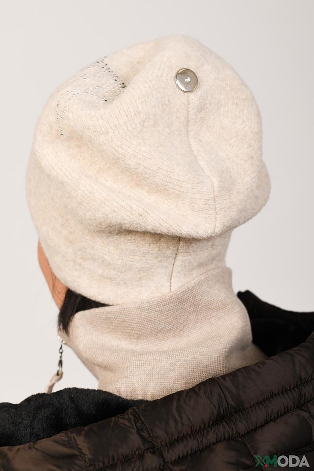 Шапка имеет приятную текстуру и деликатный блеск благодаря декоративным элементам. Бежевый цвет делает её универсальной и легко сочетаемой с различными видами верхней одежды. Аккуратный логотип бренда Wegener размещен на лицевой стороне.