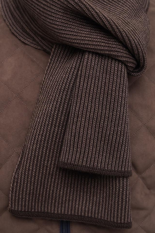Мужской шарф Wegener коричневого цвета выполнен в классическом рубчике. Аксессуар изготовлен из мягкого полиакрила с добавлением металлизированной нити, что придает ему благородный блеск и дополнительную прочность. Состав: полиакрил 50%, метализ.нить 50%