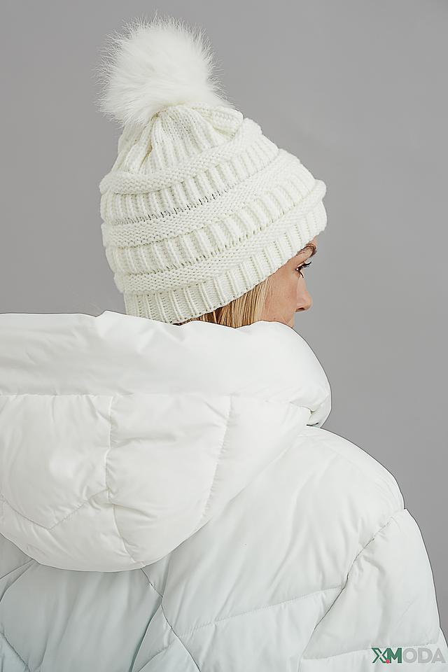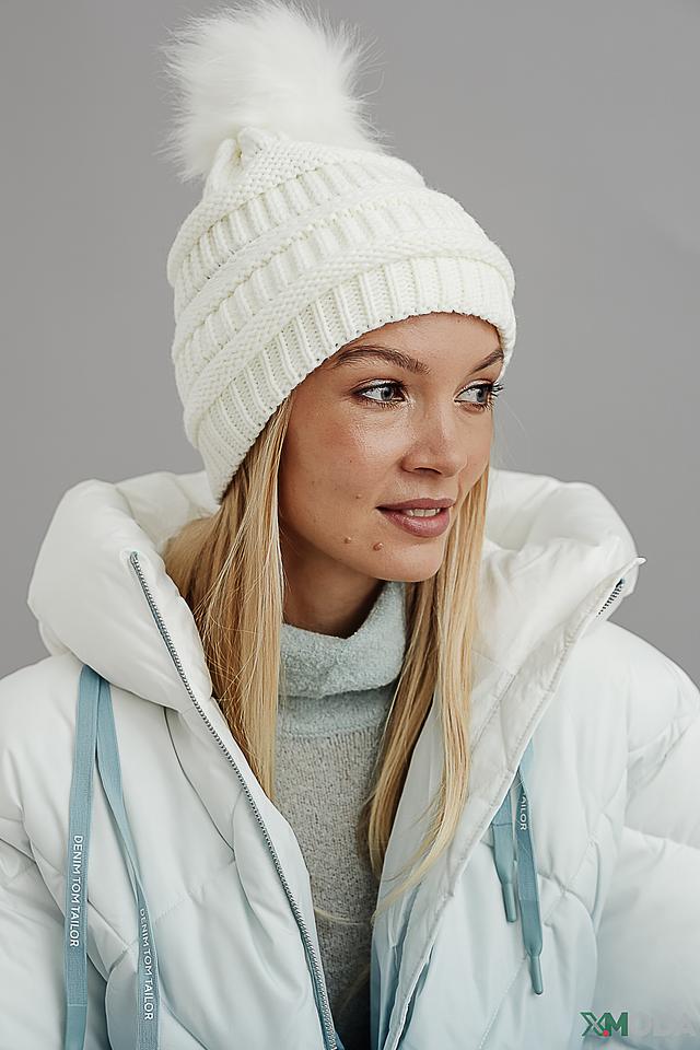Шапка оснащена большим, пушистым помпоном, который придает ей игривый и привлекательный вид. Модель плотно прилегает к голове, обеспечивая надежную защиту от холода.