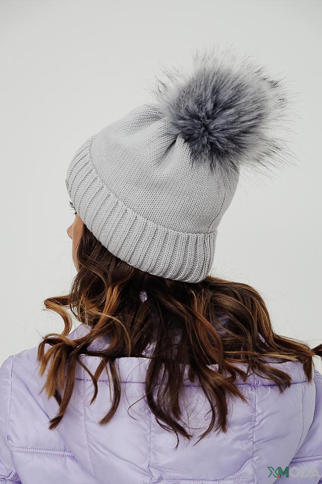 Шапка имеет классический дизайн с крупным помпоном, который придает ей игривый и стильный вид. Серый цвет шапки универсален и легко сочетается с различными элементами одежды.