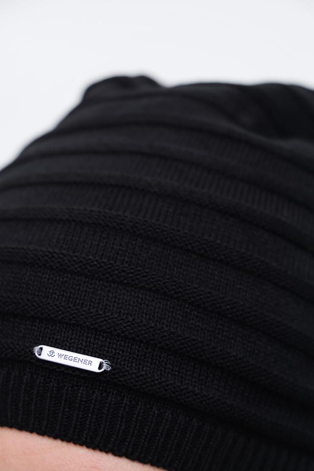Чёрная шапка Wegener — это стильный и практичный аксессуар для мужчин. Изготовлена из мягкого полиакрила, обеспечивающего комфорт и тепло в холодную погоду. Шапка имеет многослойный дизайн и украшена небольшим металлическим логотипом. Состав: полиакрил 100%