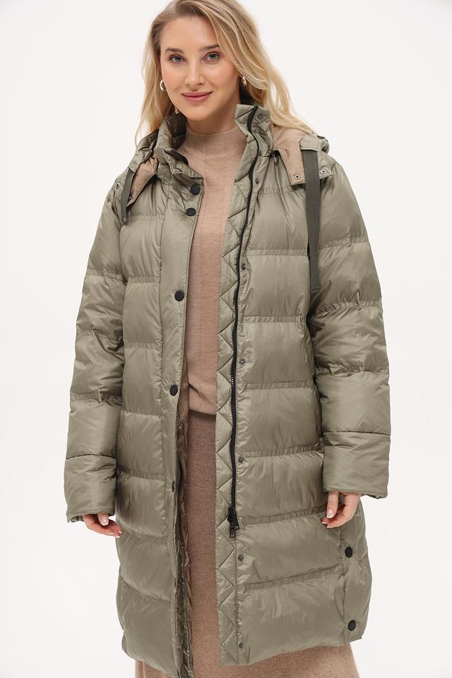 Пальто имеет прямой крой, который подходит для большинства типов фигур. Цвет хаки делает его универсальным элементом гардероба, который легко сочетается с различными стилями одежды. Это пальто станет отличным выбором для тех, кто ценит комфорт, практичность и стиль.