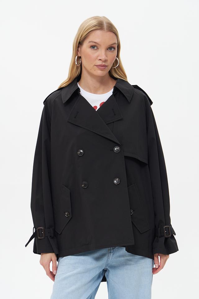 Чёрный плащ оверсайз от White Label из 100% полиэстера. Модель выполнена в классическом стиле с двубортной застёжкой и поясом. Идеальный выбор для создания стильного и комфортного образа. Состав: полиэстер 100%