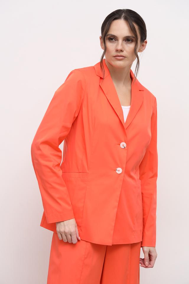 Этот жакет от You Just White станет ярким акцентом вашего образа. Модель выполнена в насыщенном оранжевом цвете и имеет классический крой с лацканами.