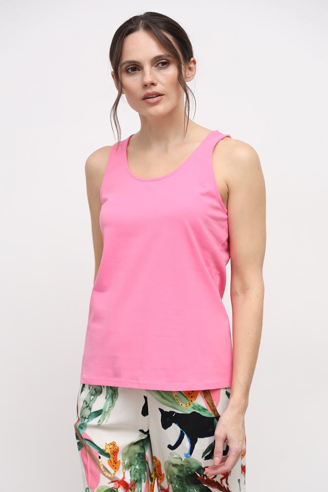 Топ You Just White фуксиевого цвета — это базовая модель без рукавов с круглым вырезом. Изготовлен из мягкого хлопка с добавлением эластана для комфорта и хорошей посадки. Идеально подходит для создания летних образов. Состав: хлопок 96%, эластан 4%