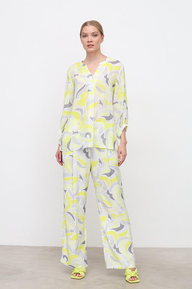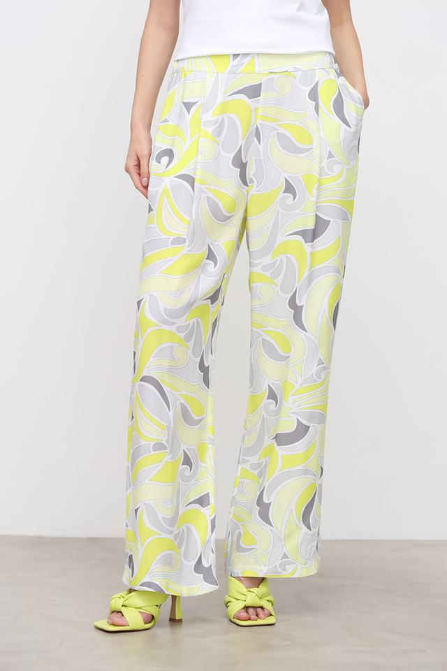 Женские брюки You Just White с оригинальным принтом в светло-зелёных, серых и жёлтых тонах станут ярким акцентом вашего образа. Модель выполнена из мягкой вискозы, обеспечивающей комфорт в носке. Состав: вискоза 100%