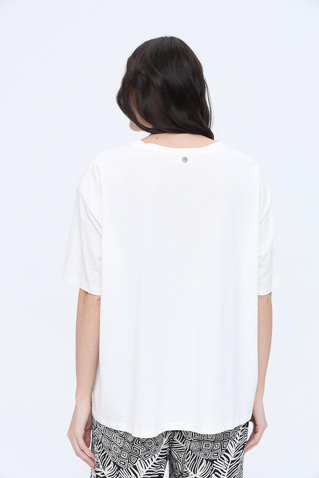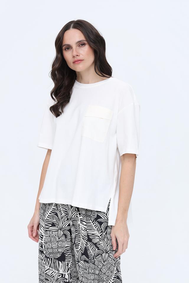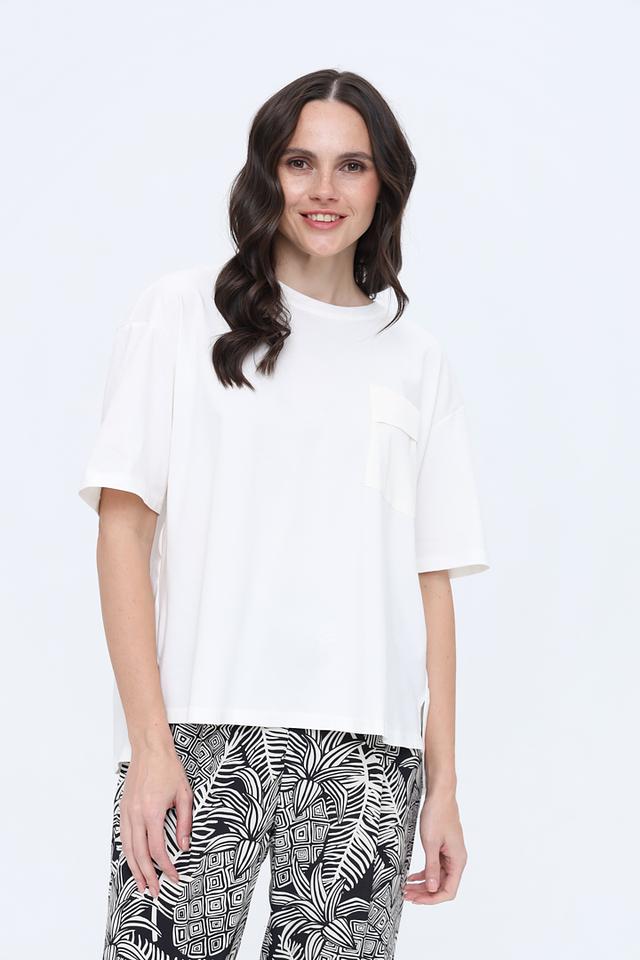 Модель имеет свободный крой, который не сковывает движения и обеспечивает свободу. Короткие рукава и круглый вырез горловины делают футболку идеальной для теплой погоды. Накладной карман на груди добавляет функциональности и оригинальности.
