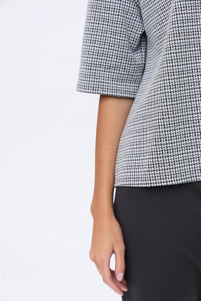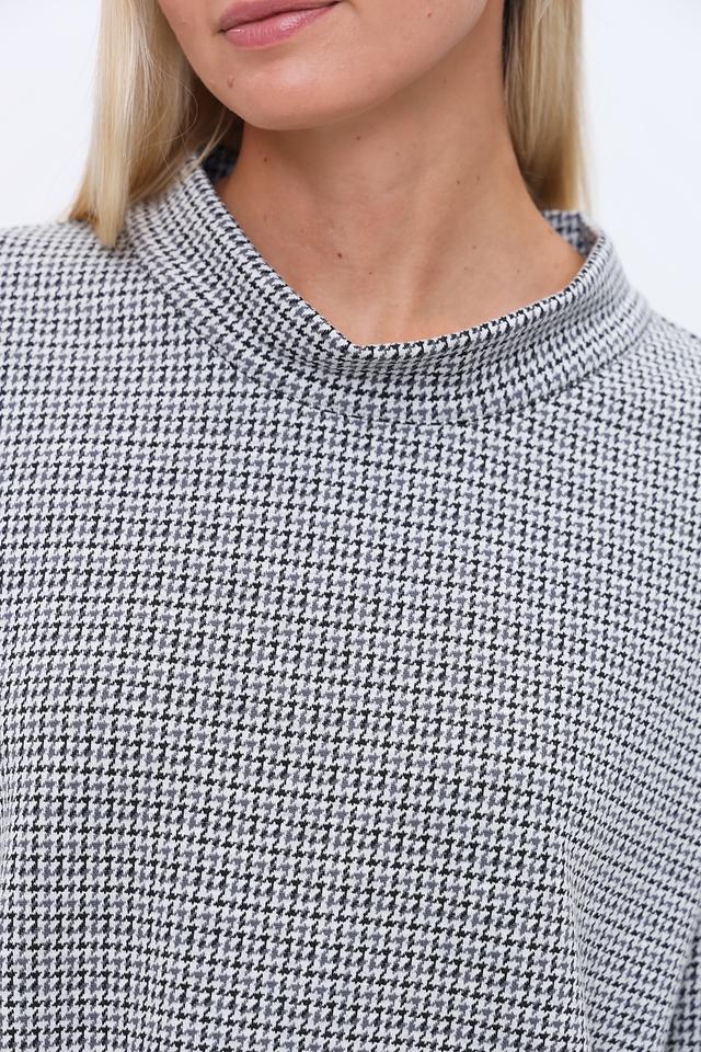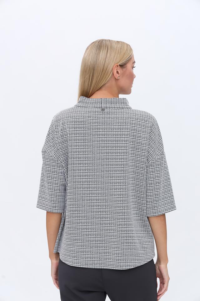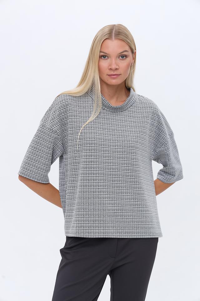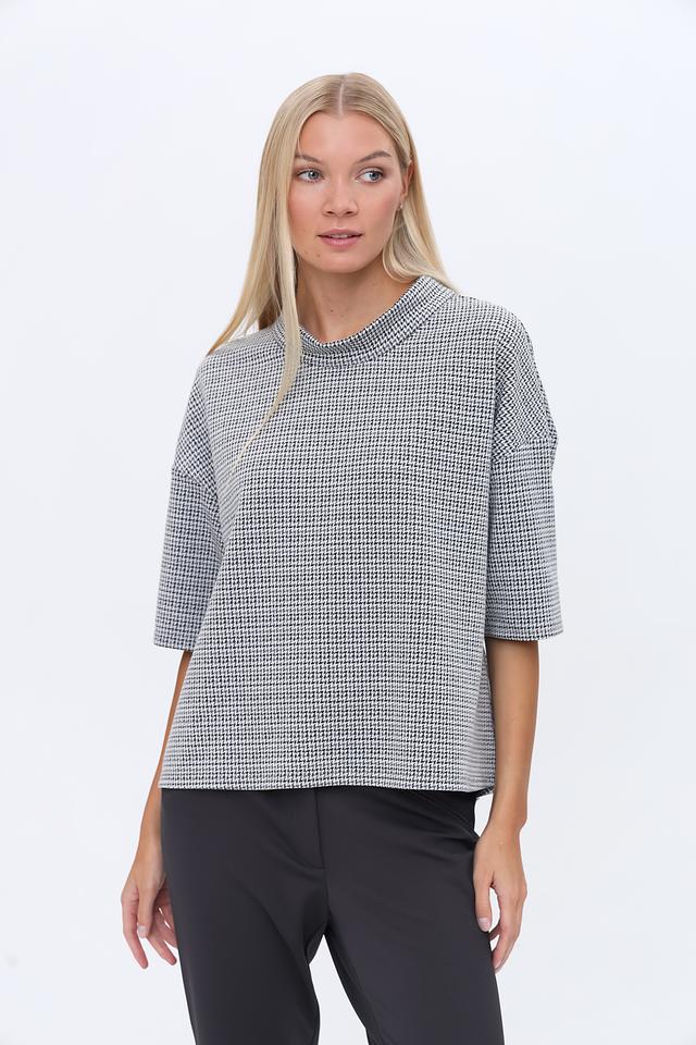 Блуза You Just White чёрно-белого цвета с короткими рукавами и округлым вырезом горловины. Изготовлена из сочетания полиэстера, вискозы и эластана, обеспечивающего комфорт и удобство в носке. Стильный крой и клетчатый принт делают эту блузу универсальным элементом гардероба. Состав: полиэстер 74%, вискоза 24%, эластан 2%