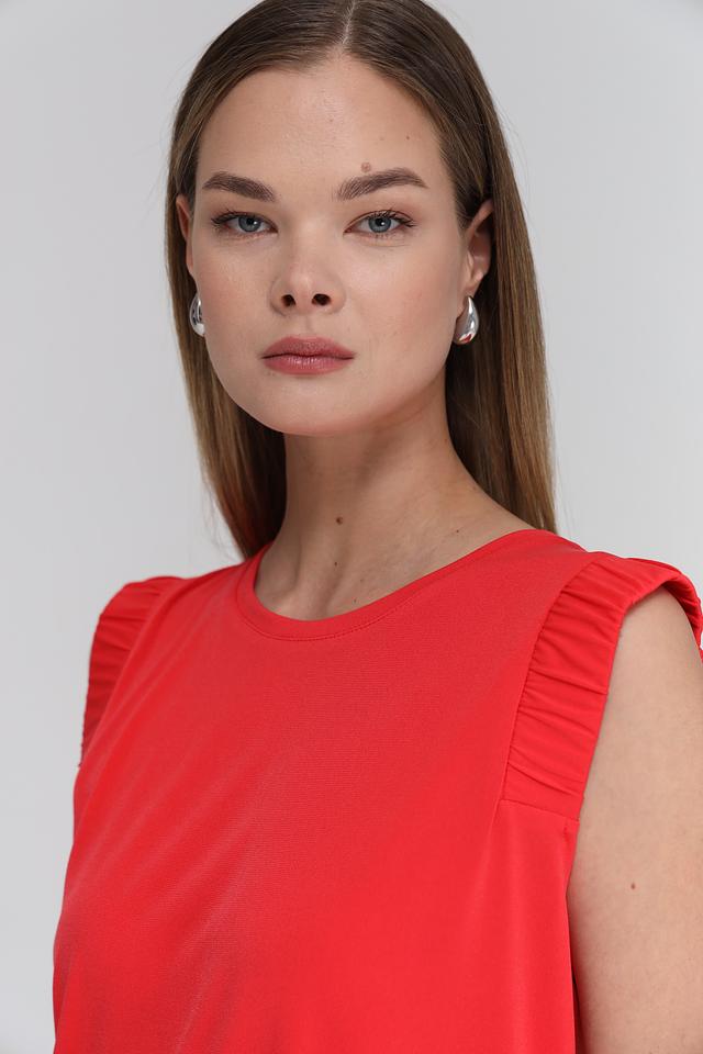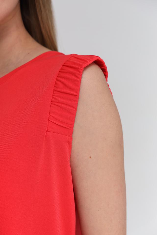 Красный топ от You Just White – это стильный и удобный выбор для создания яркого образа. Модель без рукавов с округлым вырезом и декоративными воланами на плечах добавит женственности вашему гардеробу. Состав: полиэстер 95%, эластан 5%