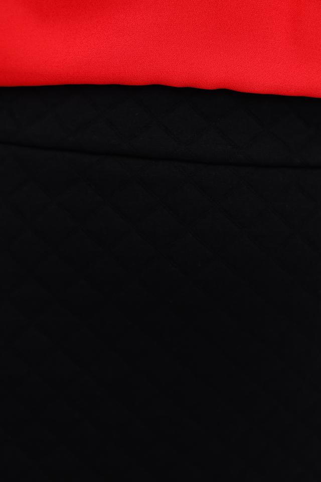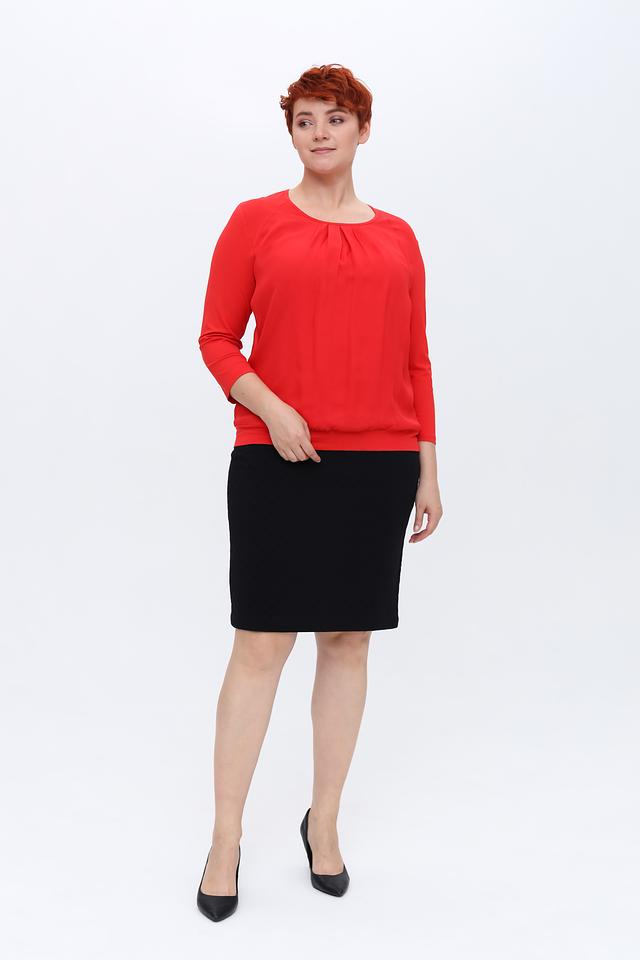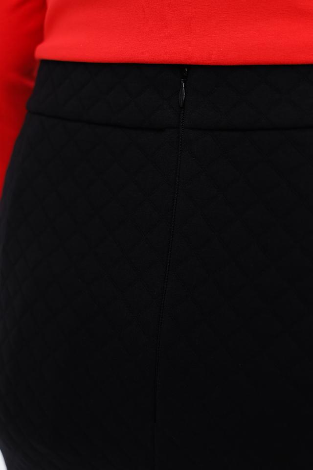 Юбка имеет длину до колена и застегивается на потайную молнию сзади. Текстурированная поверхность ткани придает изделию особый шарм. Благодаря своему лаконичному дизайну, юбка легко сочетается с различными блузками, топами и жакетами.