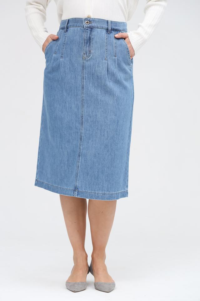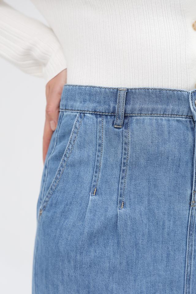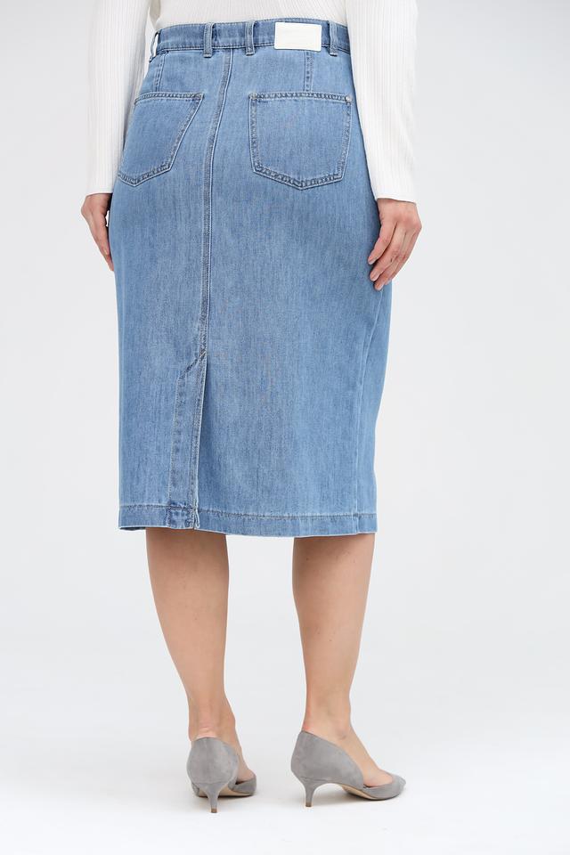 Юбка имеет длину миди и прямой крой, что делает ее универсальной для разных типов фигур. Удобный пояс с петлями обеспечивает комфортную посадку по талии. На передней части юбки расположены функциональные карманы.