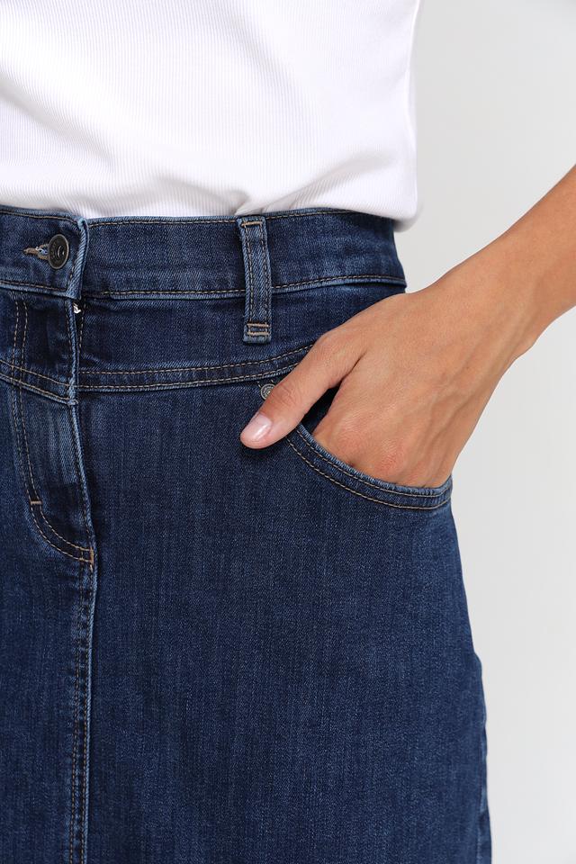 Джинсовая юбка Gerry Weber классического синего цвета – стильное и комфортное решение для повседневного образа. Изготовлена из хлопка с добавлением полиэстера и эластана, обеспечивающих удобство и сохранение формы. Состав: хлопок 82%, полиэстер 16%, эластан 2%