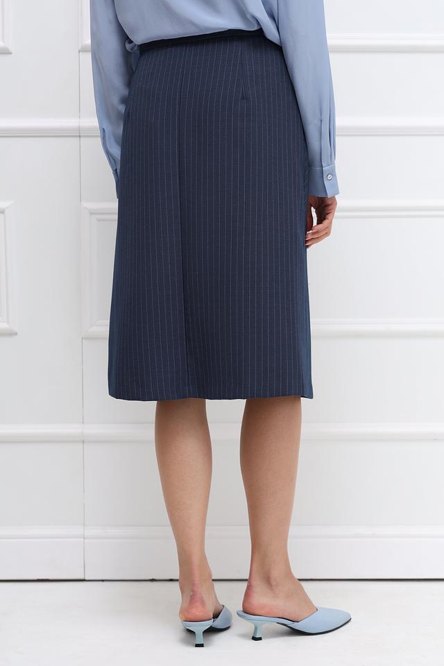 Эта юбка от Gerry Weber станет отличным дополнением к вашему гардеробу. Модель выполнена в синем цвете с вертикальной полоской, что визуально вытягивает силуэт.
