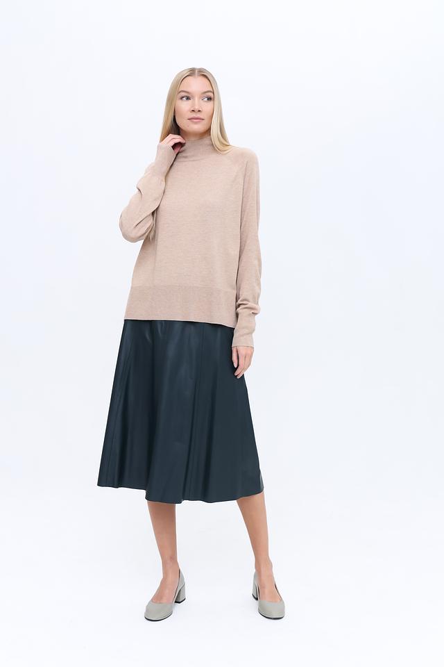 Юбка имеет классический А-силуэт и длину миди, что делает её подходящей для различных случаев – от повседневной носки до особых мероприятий. Эластичный пояс обеспечивает удобную посадку по фигуре.