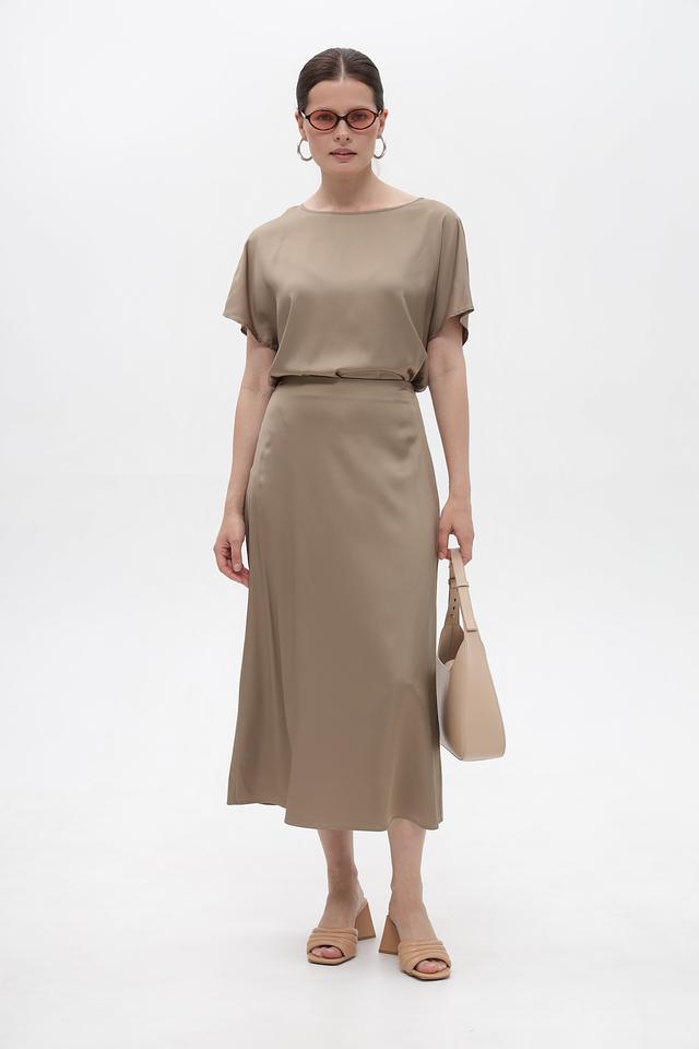 Юбка имеет прямой крой и классическую длину, что делает ее подходящей для создания различных образов – от повседневных до более формальных. Неброский бежевый цвет легко сочетается с другими элементами гардероба, позволяя создавать стильные и гармоничные ансамбли.