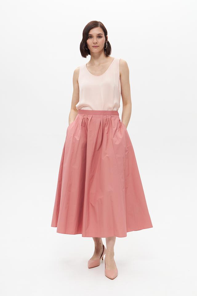 Эта юбка-солнце от бренда Oui выполнена в нежном персиковом цвете и станет прекрасным выбором для создания женственного и элегантного образа.