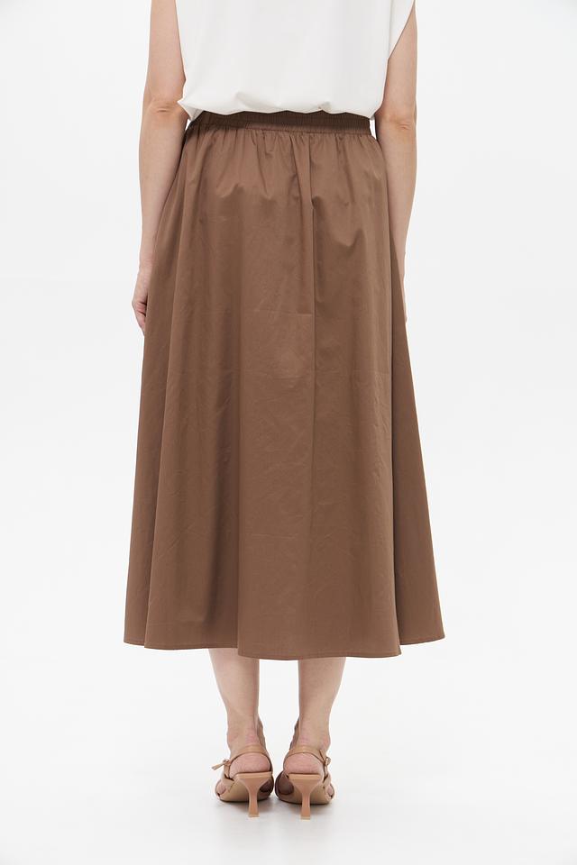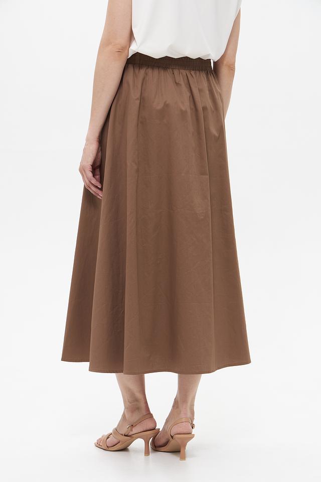 Юбка UNQ коричневого цвета — это стильная и комфортная модель длиной миди с эластичным поясом. Изготовлена из 100% хлопка, обеспечивающего удобство в носке и воздухопроницаемость. Состав: хлопок 100%