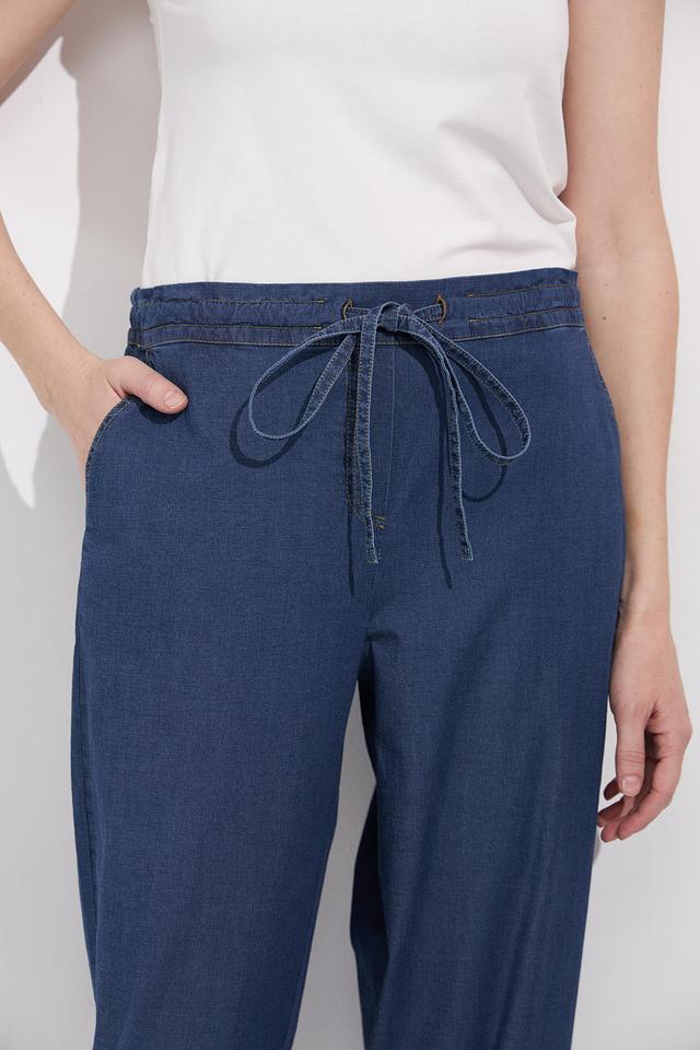 Удобный пояс на завязках позволяет регулировать посадку по фигуре. Брюки идеально подойдут для создания повседневных образов, сочетаясь с различными топами и обувью. Состав: хлопок 98%, эластан 2%.