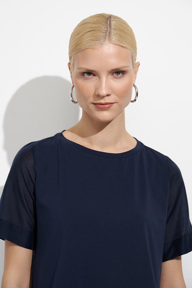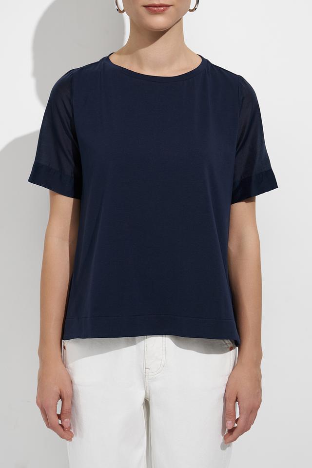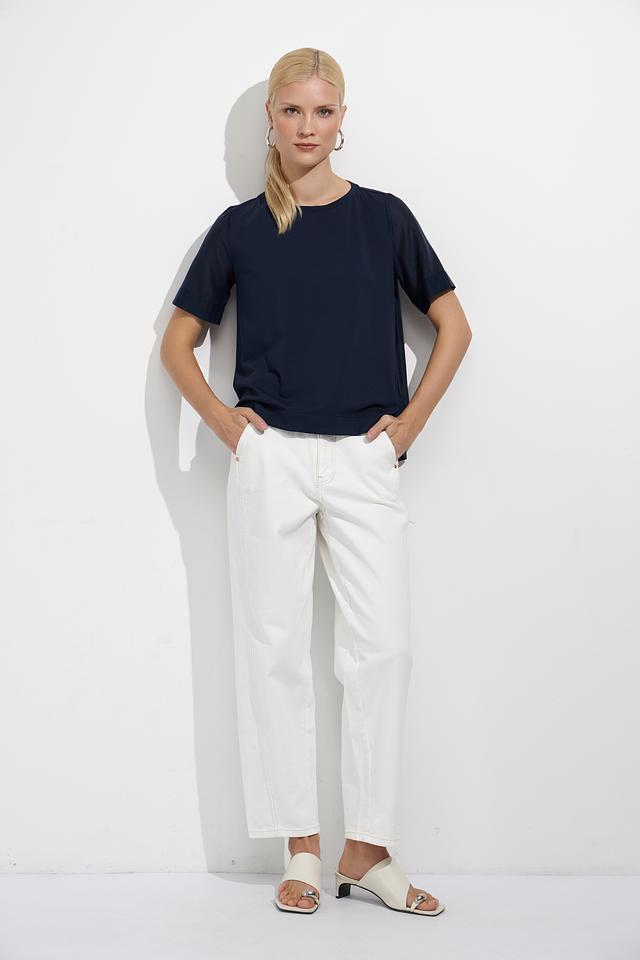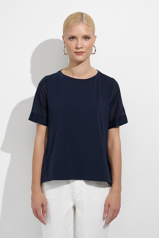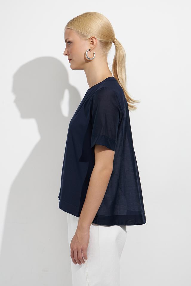 Синяя блуза Zanetti с короткими рукавами и яркой отделкой по горловине и рукавам. Изготовлена из мягкого хлопка с добавлением эластана для комфорта и хорошей посадки. Состав: хлопок 94%, эластан 6%