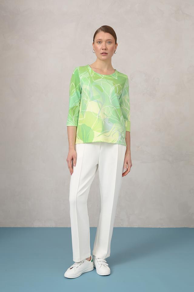Женский пуловер Olsen лаймового цвета с оригинальным принтом в виде листьев станет ярким акцентом вашего образа. Модель выполнена из мягкого и приятного к телу сочетания полиэстера и вискозы, обеспечивая комфорт в носке. Состав: полиэстер 74%, вискоза 24%, эластан 2%