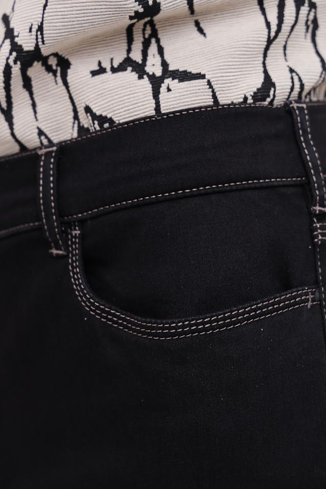 Особенностью этих джинсов является контрастная белая строчка, которая подчеркивает линии кроя и добавляет образу оригинальности. Карманы с декоративной отделкой также выполнены с использованием белой строчки, что создает гармоничный и завершенный вид.