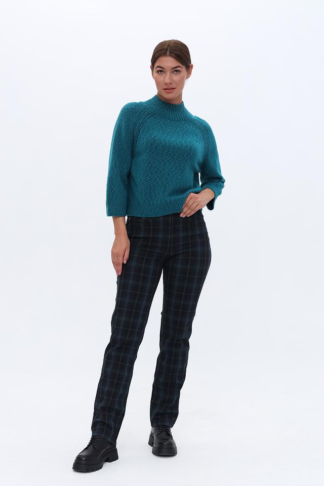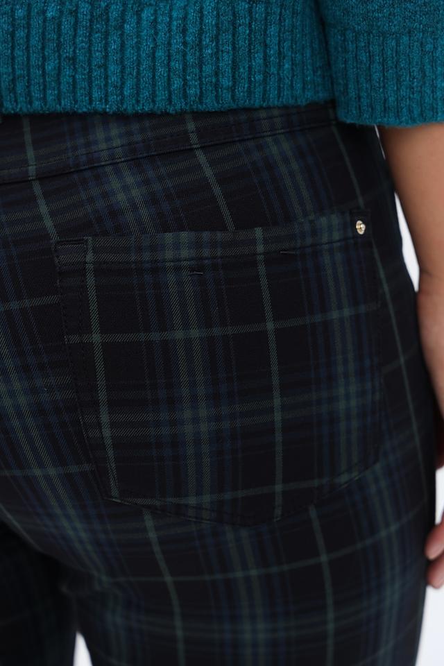 Брюки выполнены из высококачественного хлопка (93%) с добавлением эластана (7%), что обеспечивает комфорт при носке, хорошую посадку и сохранение формы. Клетка выполнена в сочетании зеленого и черного цветов, создавая эффектный и универсальный принт.