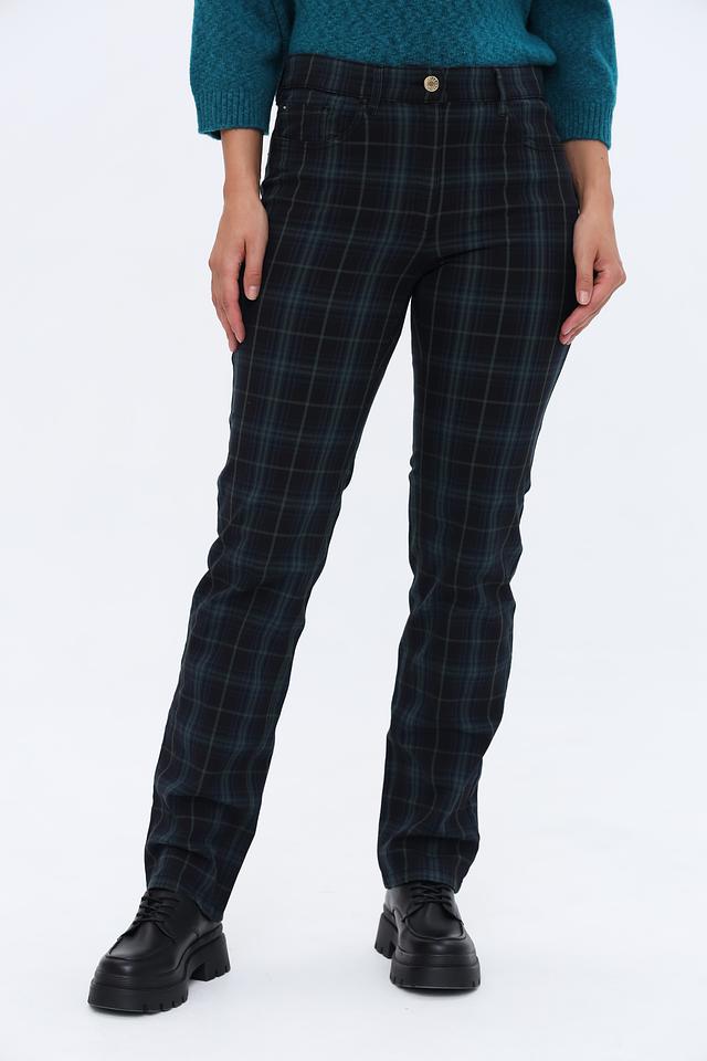 Женские брюки Zerres зеленого и черного цвета в классическую клетку. Модель выполнена из хлопка с добавлением эластана для комфорта и хорошей посадки. Идеальный выбор для создания стильного повседневного образа. Состав: хлопок 93%, эластан 7%