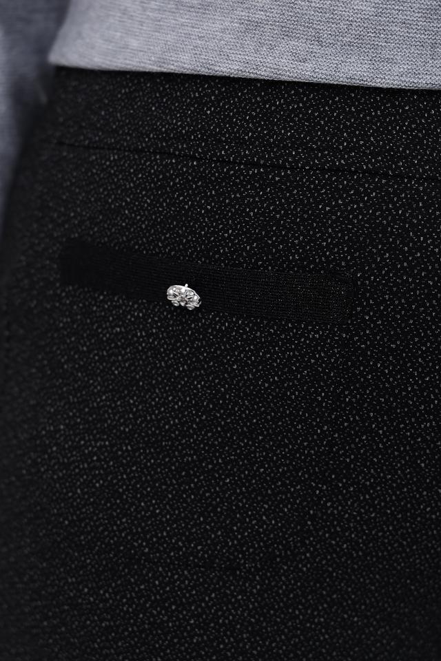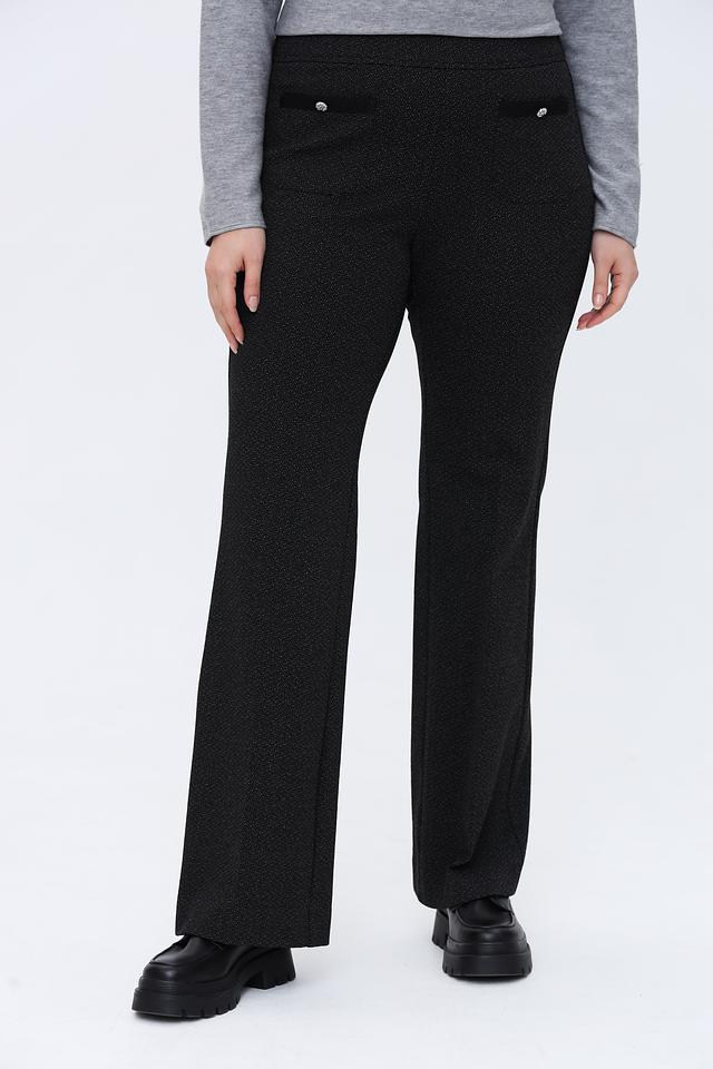 Брюки имеют прямой крой и пояс на резинке, что обеспечивает удобную посадку по фигуре. Декоративные элементы в виде небольших страз на карманах придают брюкам изысканность и индивидуальность.