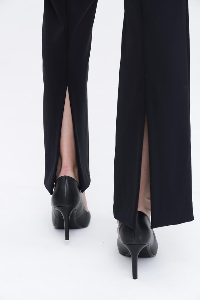 Данная модель идеально подходит для создания как повседневных, так и вечерних образов. Брюки можно сочетать с блузками, топами, свитерами и жакетами. Застежка на молнию и пуговицу обеспечивает надежную фиксацию. Наличие разрезов по низу брюк добавляет динамики и легкости.
