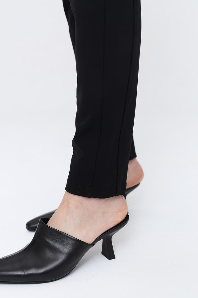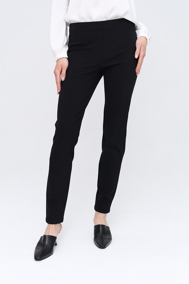 Брюки имеют прямой крой, который визуально удлиняет силуэт и обеспечивает комфортную посадку. Эластичный пояс обеспечивает удобство в носке и позволяет брюкам идеально прилегать к фигуре.
