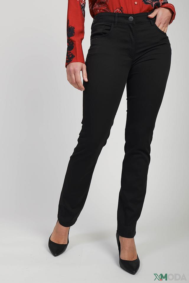 Женские джинсы Zerres черного цвета, с декоративной отделкой стразами на задних карманах. Модель выполнена из комфортного и эластичного материала, обеспечивающего удобную посадку. Состав: лиоцел 62%, хлопок 28%, полиамид 8%, эластан 2%