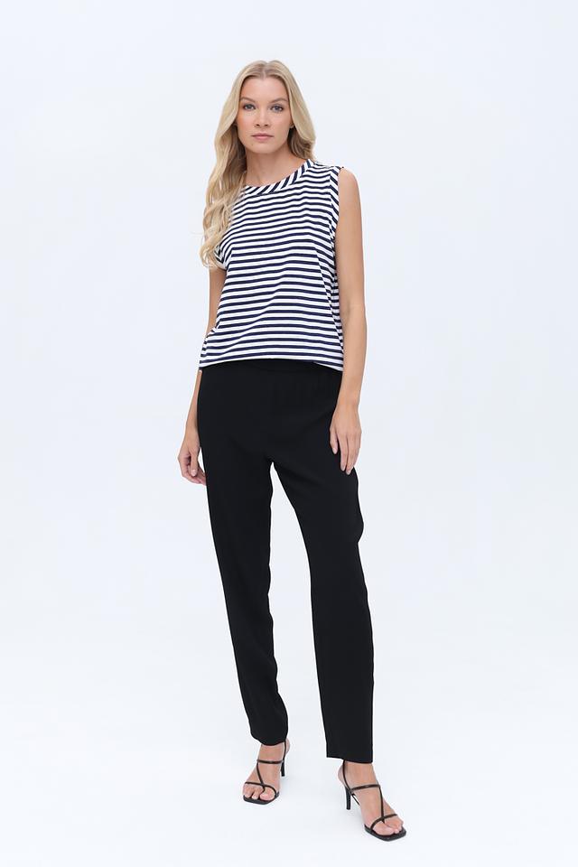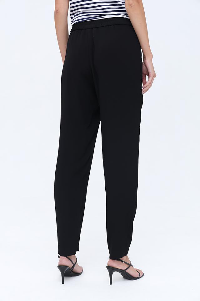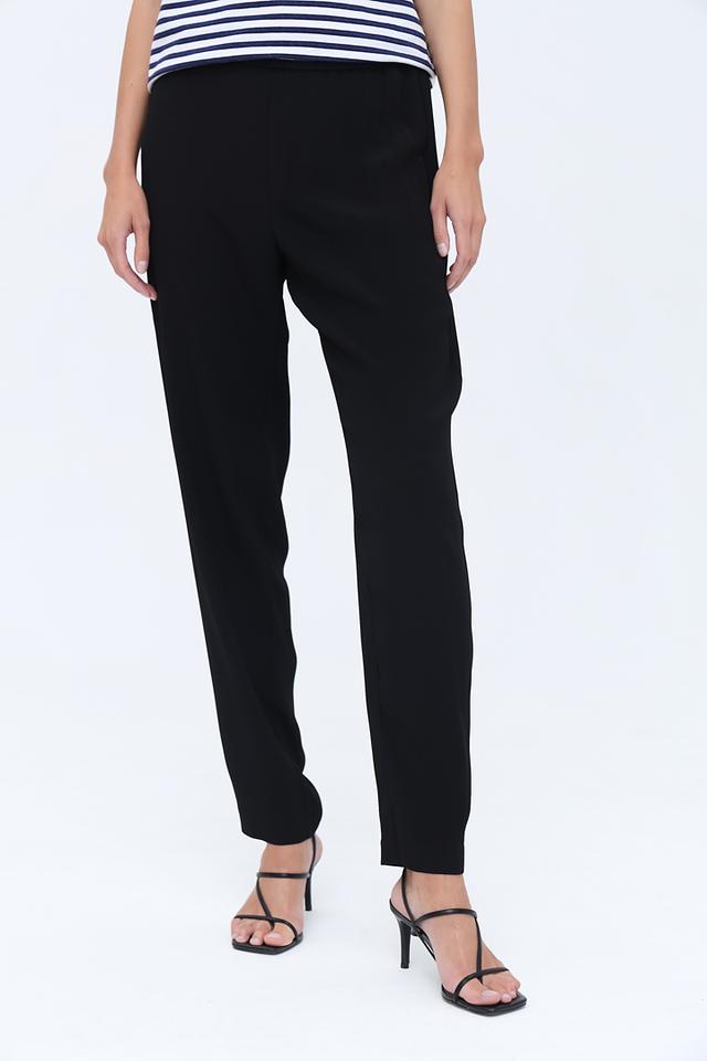 Брюки имеют прямой крой, который визуально удлиняет силуэт и обеспечивает комфортную посадку. Эластичный пояс гарантирует удобство в носке и позволяет брюкам идеально сидеть на фигуре.