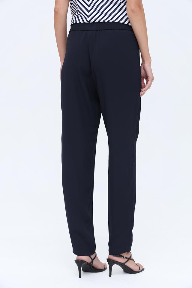 Брюки имеют прямой крой и стандартную посадку, что обеспечивает свободу движений и комфорт в течение всего дня. Эластичный пояс гарантирует идеальную посадку по фигуре, а также дополнительный комфорт.
