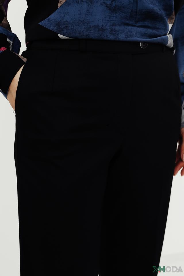 Брюки имеют прямой крой, который обеспечивает комфортную посадку и свободу движений. Ткань, состоящая из полиэстера, вискозы и эластана, приятна на ощупь, хорошо держит форму и практически не мнется.