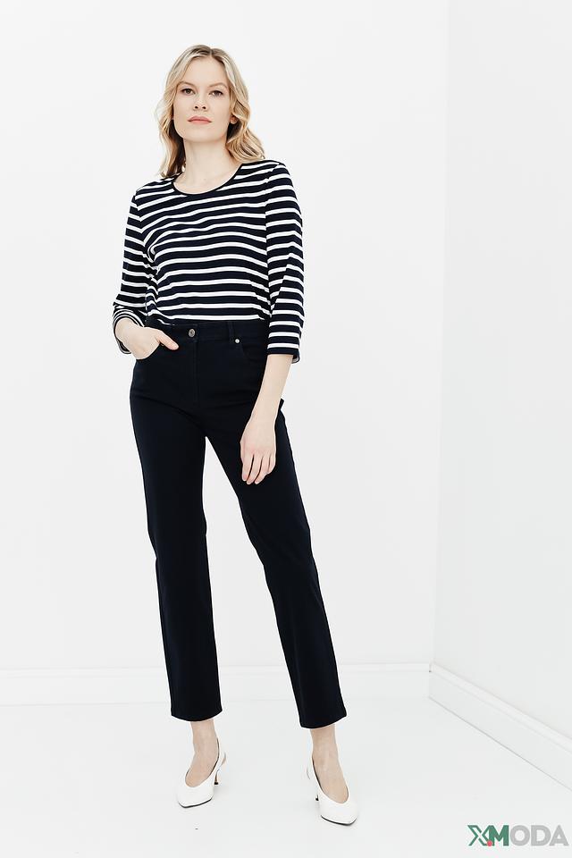 Джинсы имеют прямой крой, который обеспечивает комфортную посадку и свободу движений. Высокая посадка подчеркивает талию и визуально вытягивает силуэт. Ткань состоит из 94% хлопка и 6% эластана, что обеспечивает мягкость, комфорт и небольшую эластичность.