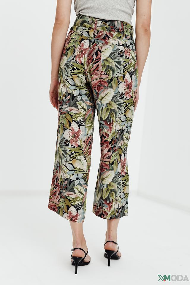Капри имеют яркий и красочный цветочный принт, который добавит вашему образу женственности и свежести. Пояс на резинке обеспечивает комфортную посадку по фигуре, а свободный крой не сковывает движений.