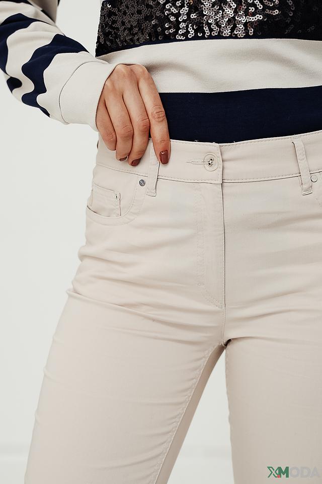 Бежевый цвет брюк является нейтральным и легко комбинируется с другими цветами. Они идеально подойдут для создания как повседневных, так и более элегантных образов. Состав: хлопок 98%, эластан 2%.