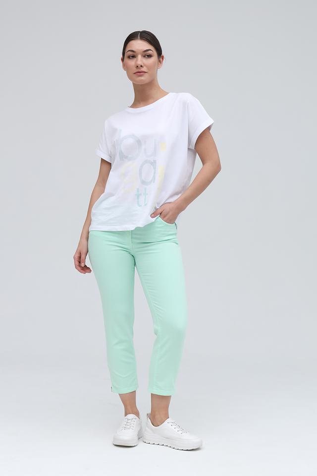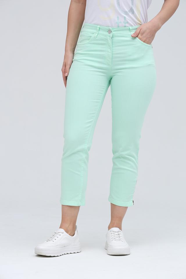 Представляем вашему вниманию стильные капри от бренда Zerres. Эта модель выполнена в нежном мятном цвете, который освежит ваш образ и добавит в него легкости.