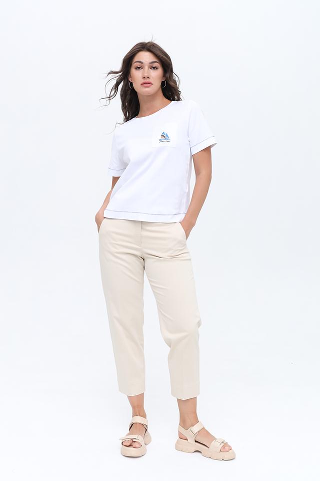 Модель имеет классический крой с зауженным силуэтом к низу, что визуально удлиняет ноги. Капри оснащены удобным эластичным поясом и боковыми карманами.