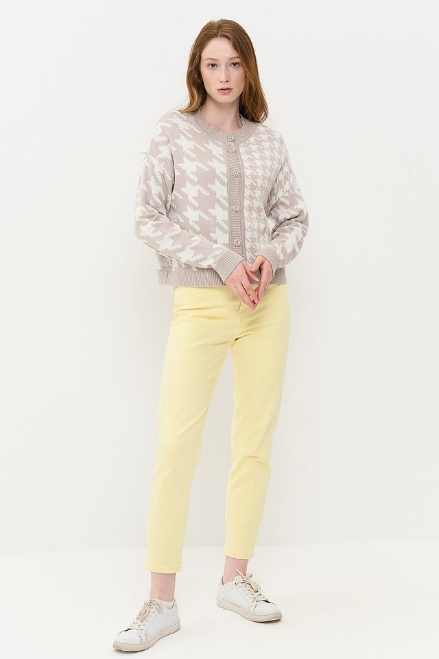 Бежевый кардиган BE YOU с геометрическим рисунком – стильное и уютное решение для создания модных образов. Изготовлен из мягкой смеси хлопка и полиакрила, обеспечивающей комфорт в носке. Застежка на пуговицы. Состав: хлопок 50%, пан 50%