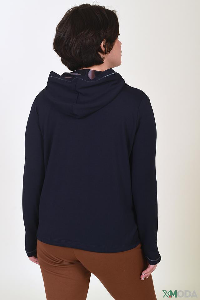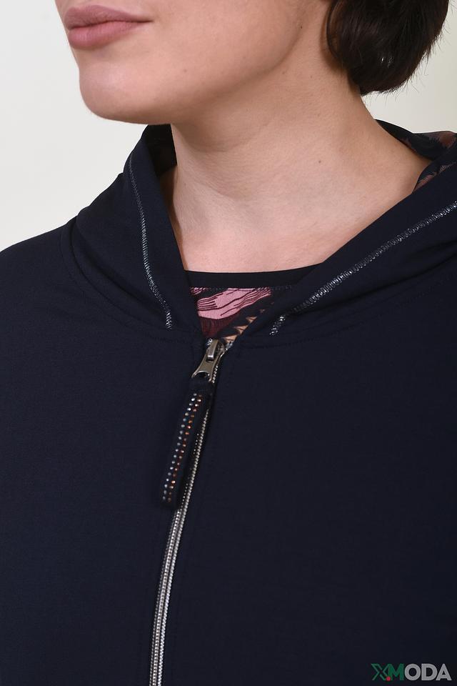 Тёмно-синий жакет от Betty Barclay с капюшоном и застёжкой-молнией. Модель выполнена из мягкого модала с добавлением эластана, обеспечивающего комфортную посадку. Жакет станет отличным дополнением к вашему повседневному гардеробу. Состав: модал 95%, эластан 5%