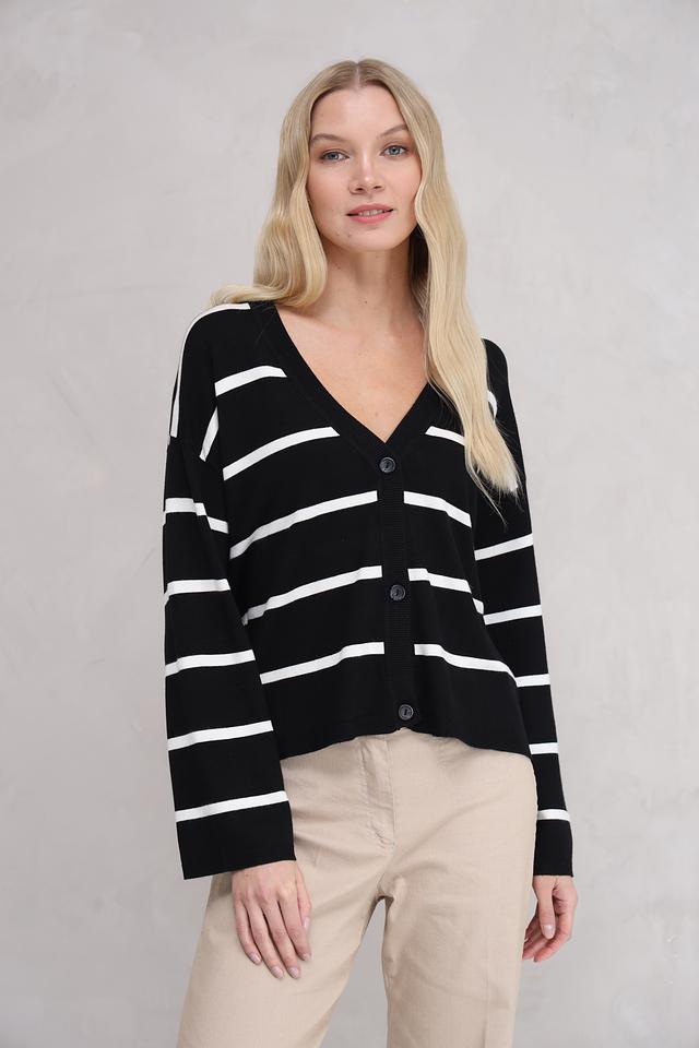 Жакет Broadway чёрного цвета с белыми полосами – стильная и удобная модель на пуговицах. Изготовлен из мягкой вискозы с добавлением нейлона, обеспечивающей комфорт и износостойкость. Идеально дополнит повседневный гардероб. Состав: вискоза 70%, нейлон 30%