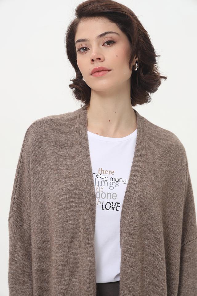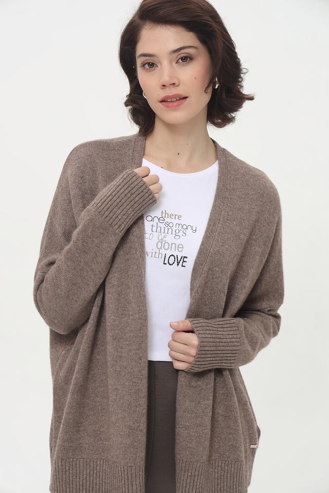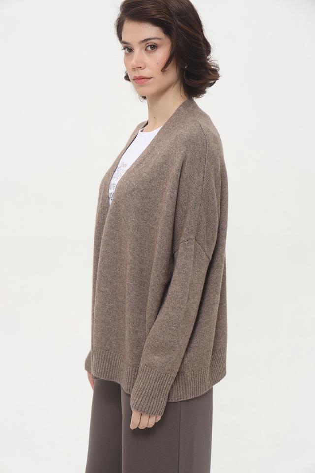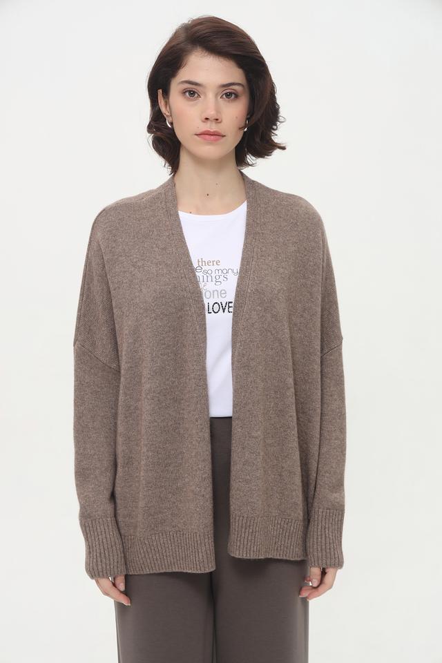 Модель имеет свободный крой, который не сковывает движений, и открытый силуэт, позволяющий сочетать кардиган с различными предметами гардероба. Длинные рукава и вязаная текстура добавляют изделию особого шарма.